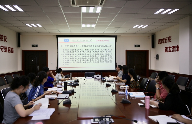 本次备课会由徐玉明老师主讲,内容为教材第一章“人生的青春之问”。徐老师根据教材基本内容,结合疫情防控等现实热点问题按照“导入(是什么)——展开(为什么)——回归(怎么做)”的逻辑思路,从“说教材”、“说教法”、“说思路”和“说教学过程”四个方面做了详细的讲解。常春副经理对徐老师的讲解做了点评,并对集体备课会的形式给予肯定。