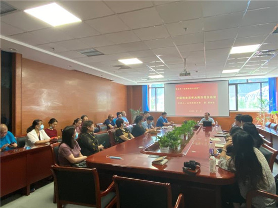 这是今年邵勇第二次参加“社科知识大讲堂”活动。 7月7日,邵勇走进青岛山炮台教育基地,给青岛山炮台教育基地和市北区大港街道昌乐路社区的党员讲授了中国党史主题讲座。(邴建伟)