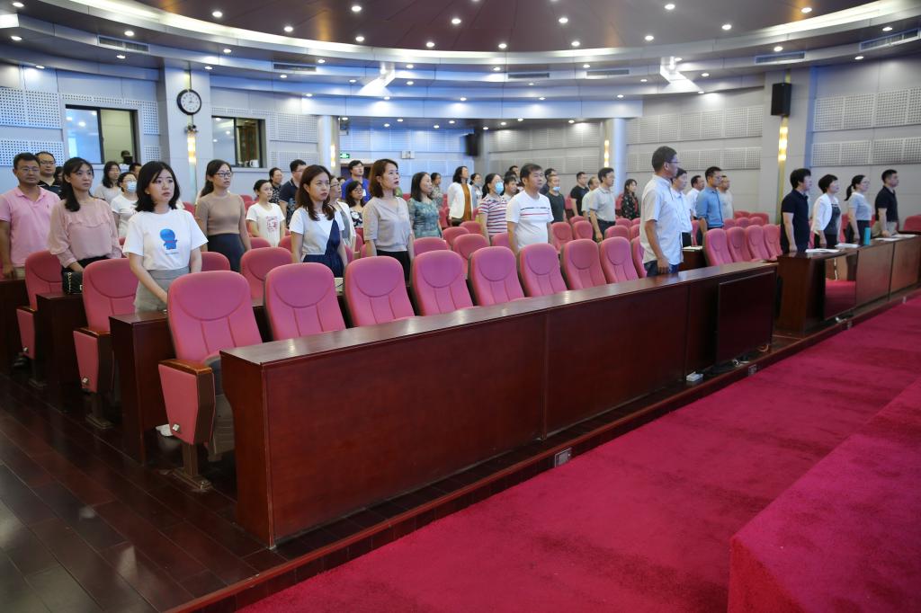 公司全体教职工奏唱国歌,会议开始。副经理常春作公司教学工作报告,她从课程体系建设、混合式教学模式构建、实践教学和创新创业教育、教师教学能力培养、社会关注等五个方面对公司三年来的思政课教学工作进行了全面回顾,对公司思政课教学目前所面临的机遇和挑战进行了分析,对公司 “十四五”期间教学工作提出了思路、目标和任务。