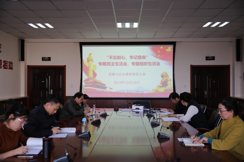 12月10日,道德与法治教研部党支部在公司223办公室召开“不忘初心、牢记使命” 专题组织生活会和开展民主评议党员的大会,会议由教研部主任杨立蛟主持。