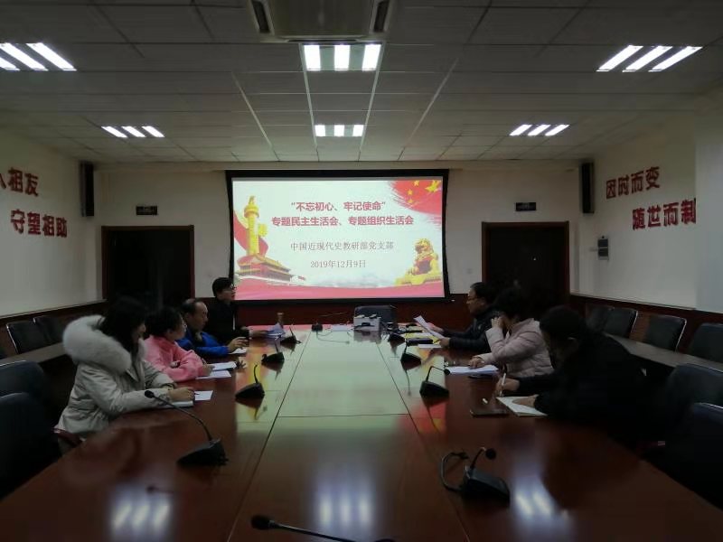 12月9日,中国近现代史教研部党支部在J9-223会议室召开“不忘初心、牢记使命”专题组织生活会。会议由支部书记宋开金主持,副经理邵勇与支部全体党员参加。
