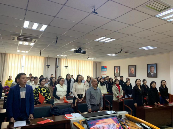 上午10点,宪法宣讲开幕式启动。主持人介绍了活动前期准备工作以及宪法知识调查问卷结果。公司巩永杰老师带领全体师生齐唱国歌,活动在热烈的气氛中拉开帷幕。