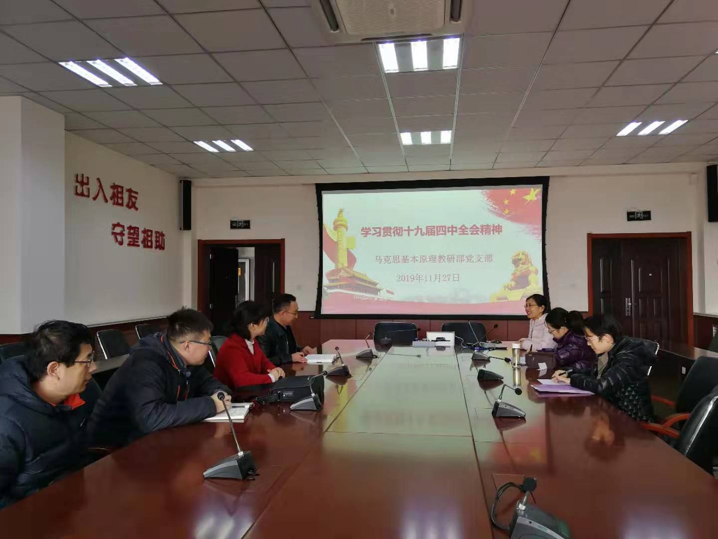 11月27日,马克思主义基本原理教研部党支部在公司223办公室召开“不忘初心、牢记使命”主题教育大会,认真学习宣传贯彻党的十九届四中全会精神。会议由支部书记吴华眉主持。