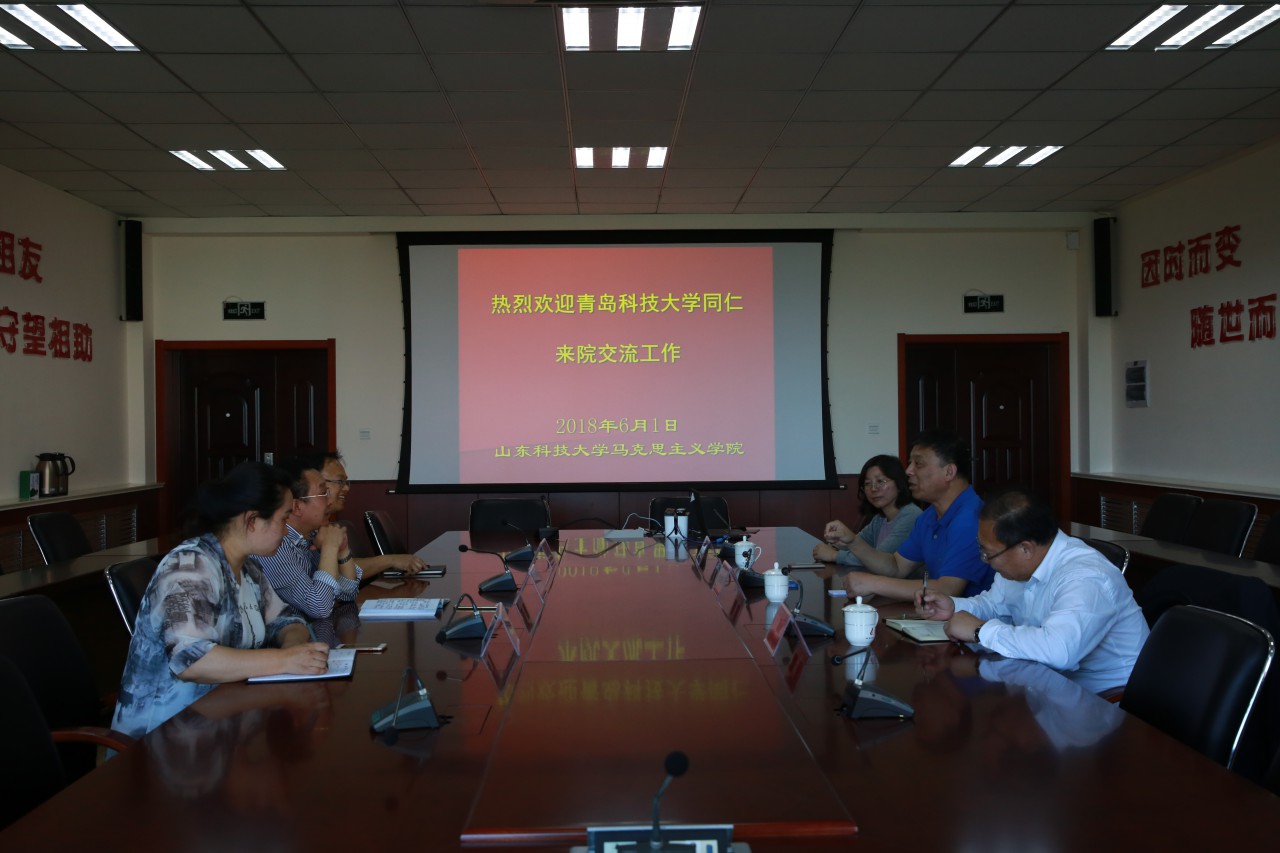 6月1日下午,青岛科技大学申博sunbet经理曹胜、副经理曲慧敏、马克思主义理论研究中心主任杜裕禄一行来院进行工作交流。经理逄奉辉、副经理邵勇、经理助理常春在J9-223会议室接待了客人。