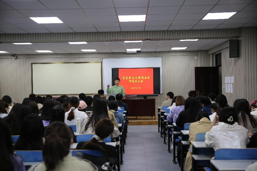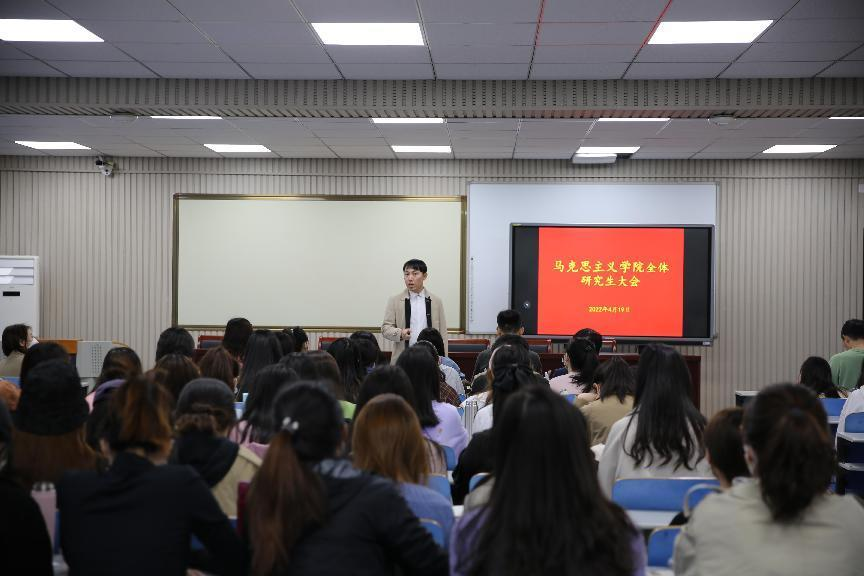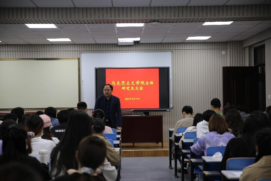 最后,邴建伟引导全院员工正确认识当前疫情防控面临的客观形势,呼吁大家认真落实疫情防控政策,从规范个人行为,佩戴口罩等点滴小事做起。他还解读了马理论学科及应届毕业生就业形势和政策,帮助研究生准确自我定位,提前科学谋划就业,做就业工作的有心人。