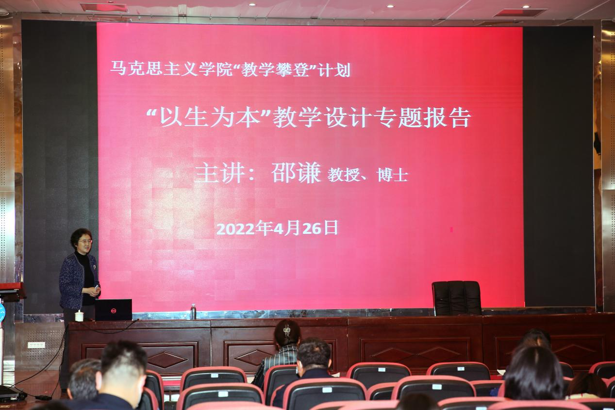 邵谦教授以“以生为本做好教学设计”为题作了极富指导和启发意义的精彩专题报告。她从自身35年一线教学经历遇到的困扰出发,通过分析教学痛点,以省级一流课程教学设计为例,从教学目标、教学方法和手段、教学过程三个方面分享了课程建设经验。报告以清晰的教学设计流程图和详实的教学数据,凸显了教学设计在课程建设中的核心价值,凸显了数字化教学平台对提升教学效果的重要作用。报告得到了与会教师的高度认同。