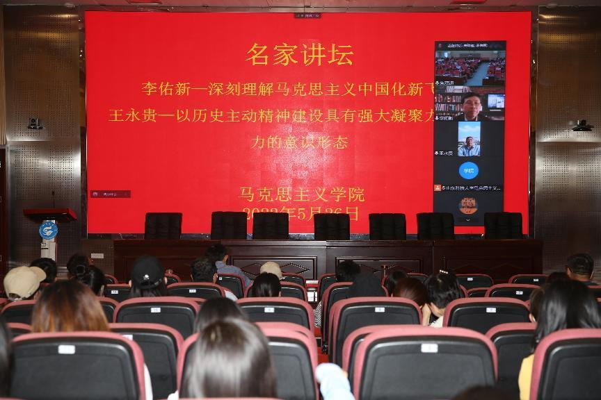 5月26日下午,由研究生工作部主办,申博sunbet承办的2022年第7期“名家讲坛”在J9-144报告厅举办。湘潭大学申博sunbet教授、博士生导师李佑新和南京师范大学申博sunbet教授、博士生导师王永贵受邀为师生分别作了题为“深刻理解马克思主义中国化新飞跃”、“以历史主动精神建设具有强大凝聚力和引领力的意识形态”的线上专题讲座,公司全体师生参加此次报告会,报告会由逄奉辉主持。