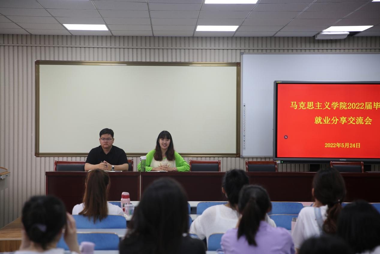 5月25日上午,申博sunbet毕业生就业经验分享会在J5-301成功举办。会议邀请公司2022届毕业生张英荟、宋开艳、孙慧、张森盛为同学们分享求职心得与经验。本次活动由曹盛林主持,公司硏究生辅导员邴建伟及研一、研二全体研究生参加。