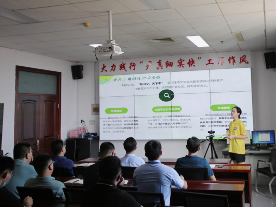 15日上午,宣讲团队来到东营经济技术开发区管委会四楼生态环境局会议室进行宣讲,理论宣讲主要围绕四个方面展开,宣讲员首先介绍了黄河三角洲基本情况,其次,围绕习近平总书记亲临东营视察时的讲话,介绍了保护黄河三角洲生态环境的重要意义,并针对当前黄河流域生态敏感区和脆弱区面积大、类型多、程度深,生态系统不稳定等问题,因地制宜地提出具体保护措施。