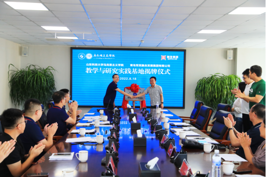 培训与研修期间,公司与青岛军民融合发展集团有限公司举行了思政课教学与研究实践基地揭牌仪式。经理逄奉辉、公司党委书记徐波,融发集团党委副书记、总经理陈伟、融发集团党委委员、副总经理王德波,融发集团副总经济师、资产文旅公司总经理杜长江、融发集团团委书记、融发文旅党支部书记、副总经理来友涛出席仪式,参加培训与研修的公司教师、融发集团干部职工代表参加仪式。逄奉辉、陈伟分别致辞并共同为思政课教学与研究实践基地揭牌。