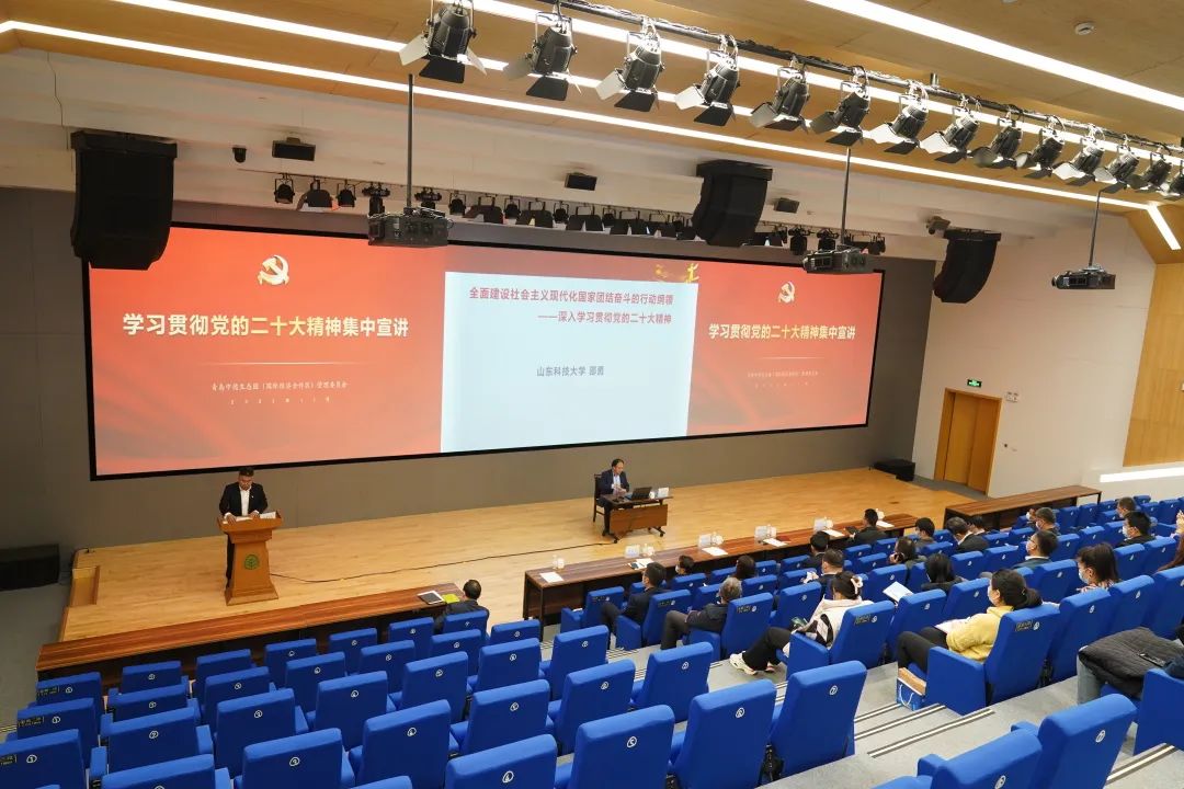 11月25日下午,根据西海岸新区区委统一安排,党的二十大精神专家学者宣讲团成员、公司副经理邵勇教授应邀到国际经济合作区(中德生态园)为园区党员干部代表作党的二十大精神集中宣讲。国际经济合作区工委领导班子成员,机关党委、综合党委委员,下设各党委和党支部书记,生产经营一线的区党代表,机关和集团公司部分党员代表50多人参加报告会。