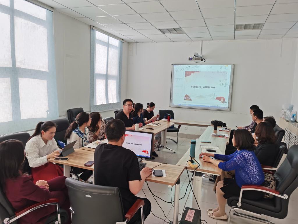 为深入学习贯彻习近平新时代中国特色社会主义思想,推动党的二十大精神进课堂,5月16日,道德与法治教研部党支部在J9-365会议室举行“党的二十大精神进课堂”第三次集体学习研讨活动,活动由支部书记孙健主持,赵怀阳老师进行导学,全体党员参加。