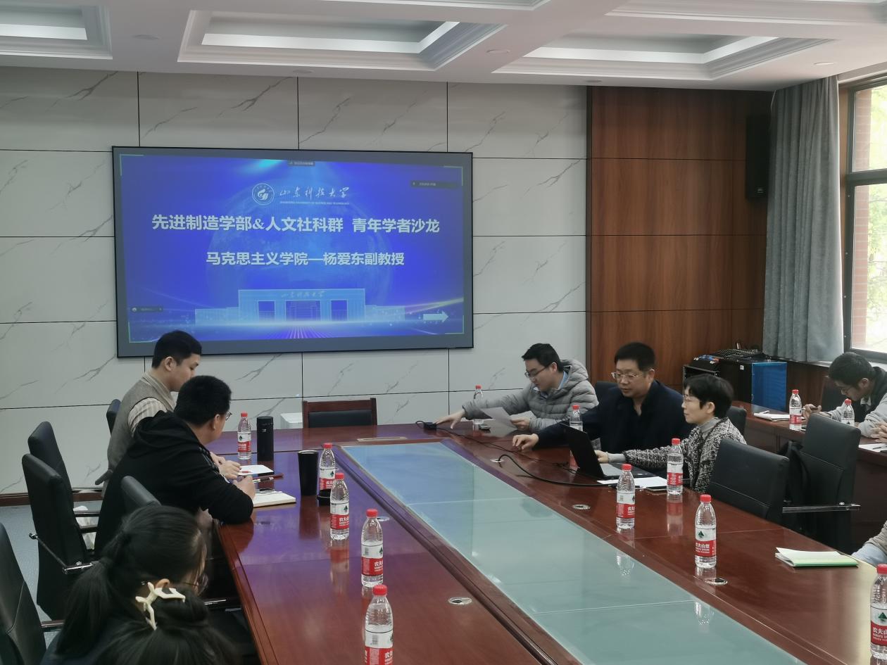 4月20日上午,由公司先进制造学部、人文社会科学学科群主办,机械电子工程公司、申博sunbet承办的第14期先进制造学部青年学者沙龙暨第7期人文社科群青年学者沙龙在J8-209举办,并在泰安校区智能装备公司设立分会场。本次沙龙采用专家报告结合圆桌会议、线下结合线上的方式。活动由机电公司苏金鹏教授主持,先进制造学部和人文社科群各公司部分青年教师参加,机电公司、申博sunbet、智能装备公司等相关公司的研究生线上旁听学习。