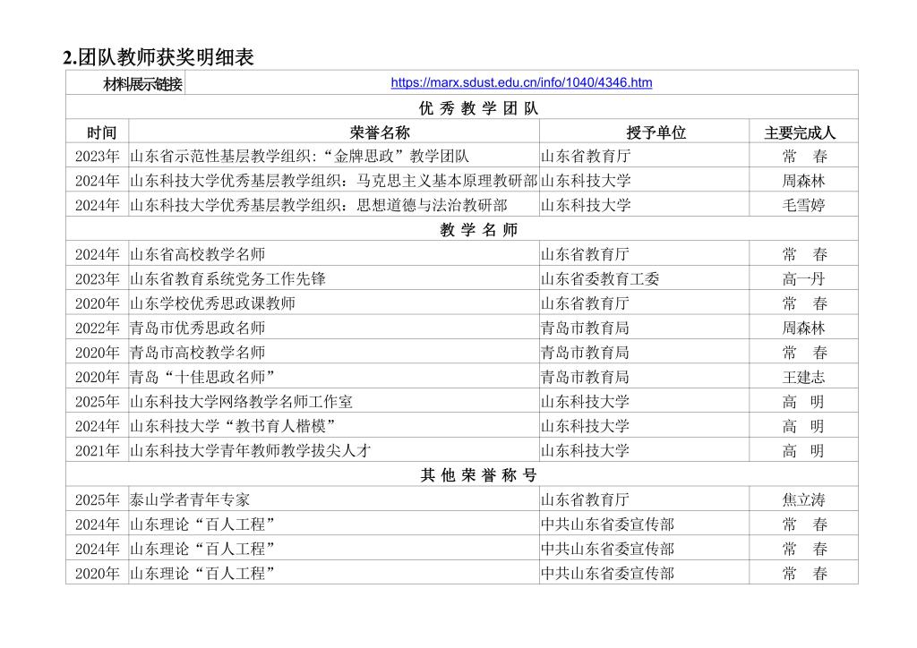 材料二:教师获奖情况