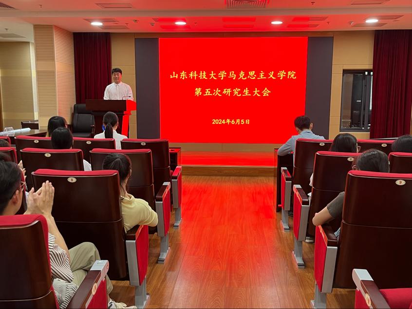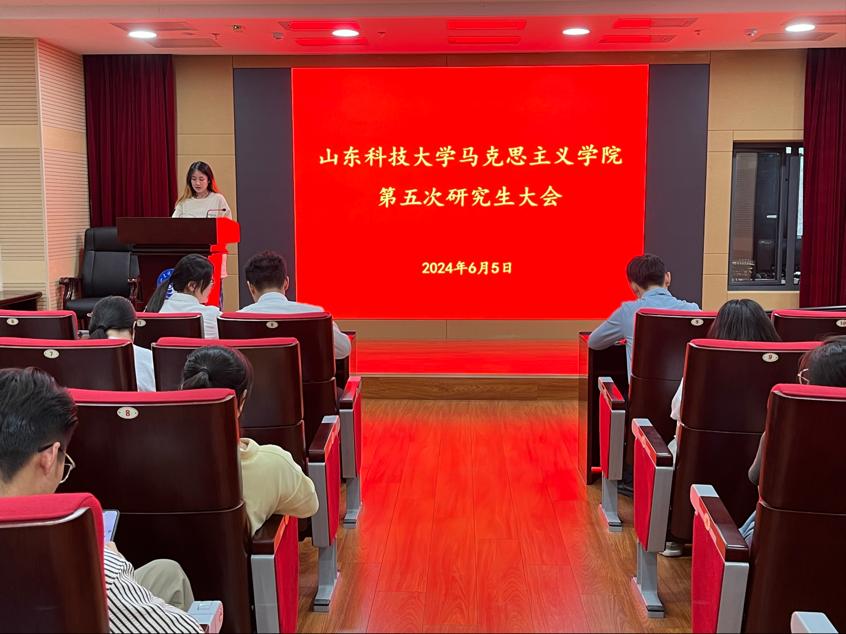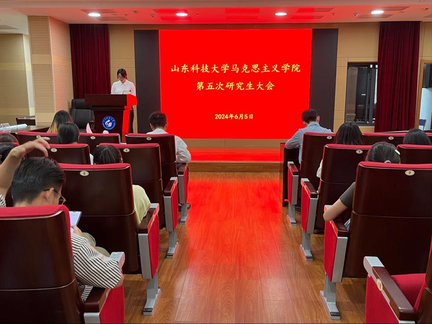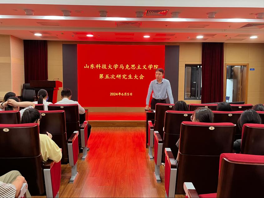 6月5日下午,申博sunbet第五次研究生大会在图书馆4号报告厅顺利召开。公司全体研究生、辅导员邴健伟参加会议,2023级研究生张鑫豪主持本次会议。