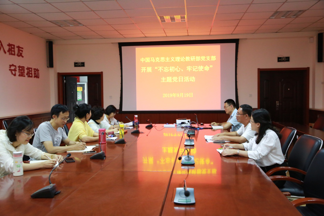 为庆祝新中国成立70周年,根据公司党委《关于开展“不忘初心、牢记使命”主题教育实施方案》,9月19日,中国马克思主义理论教研部党支部开展“我的初心使命”主题党日活动,活动由党支部书记高千主持,全体党员参加。